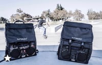 Take your music on the go with the Bumpboxx BumpPack! This high quality durable & adjustable backpack will perfectly fit your Bumpboxx Ultra on the bottom half while allowing several compartments for storage in the top half. You can also hold a skateboard, snow board, baseball bats, yoga mats and more in top clip store flap. This unit is also perfect for music festivals, BMX, cycling, camping, yoga, beach, sporting events & much more.